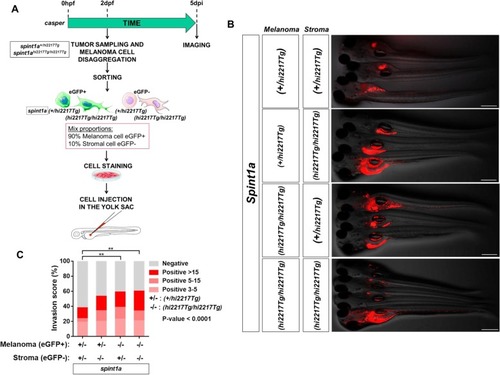 Spint1a deficiency both in stromal and tumor cell enhances SKCM dissemination in zebrafish larval model.   |