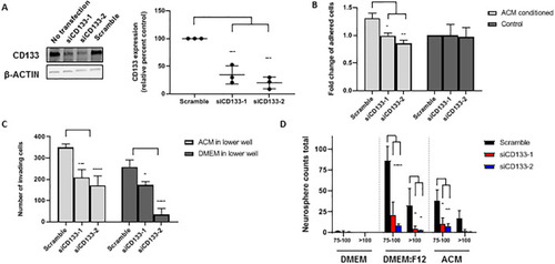 (A) Western blot analysis of CD133 expression 48 h after transfection with |