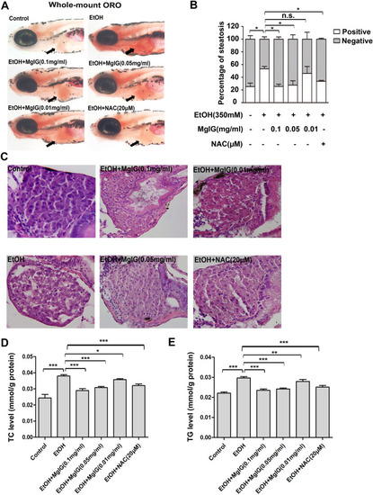 MgIG ameliorate acute alcohol induced-hepatic steatosis in zebrafish Larvae. |