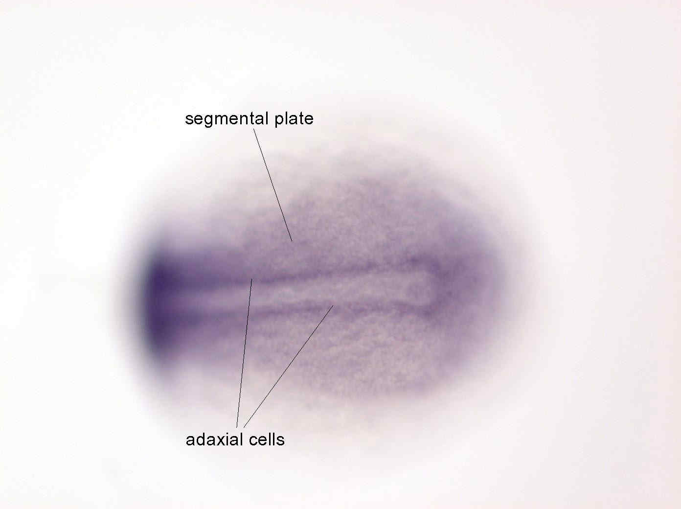 Fig. 2 basal level of expression, more staining in segmental plate and adaxial cells