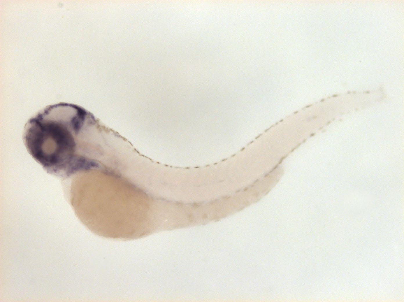 Please note that in 5 day old embryos some structures are not accessible to the probe (such as notochord, most of the trunk and tail). Therefore the description of the expression pattern is only partial.
