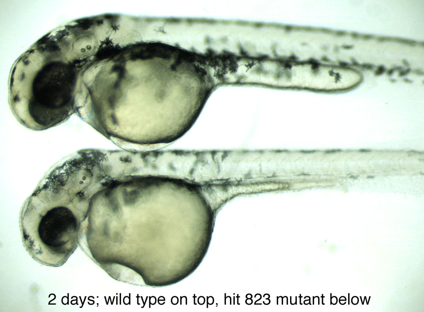 Original Submitter Comments: day 1 (late): pinched midbrain/hindbrain boundary, slightly inflated hindbrain ventricle; day 2: cns necrosis, smaller head and eye, slightly inflated hindbrain ventricle, rounder yolk with thin extension; day 3 small head and eyes, thin body, round grey yolk with thin extension, a bit of pericardial edema; days 4-5 - increasingly sicker/necrotic, edema worsens, some dead by day 5