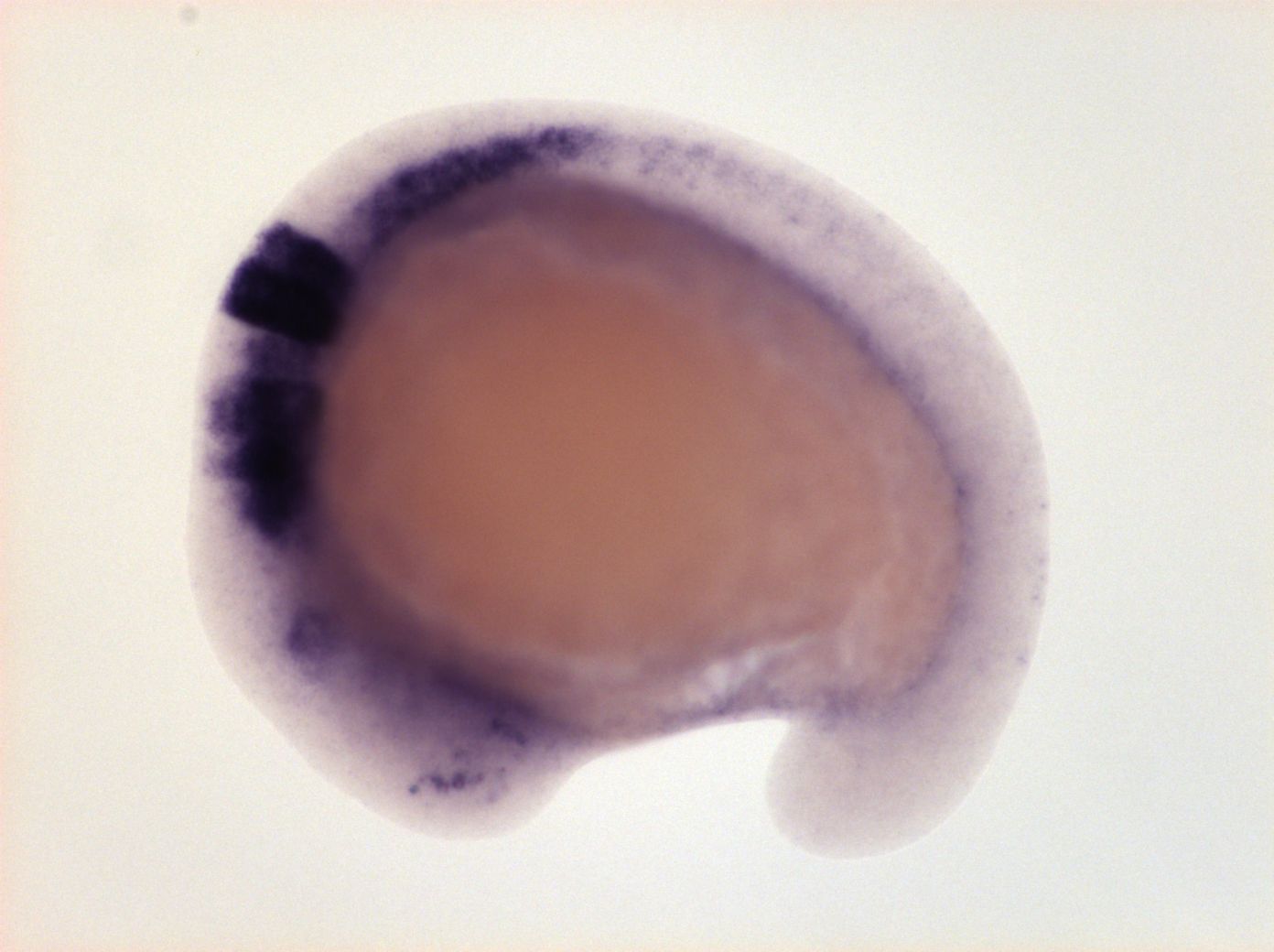 Fig. 3 rhombomere 1 - 3 (ventral part), not in rhombomere 4, ventral and dorsal part of rhombomere 5 and 6, anterior spinal chord (ventral part)