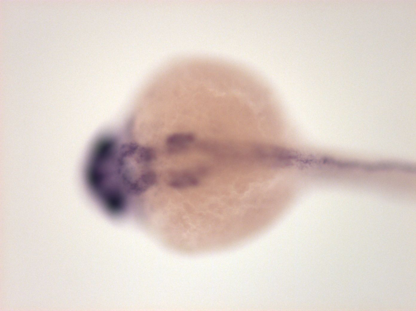 Fig. 4 dorsal CNS, spinal chord, roof plate, dorsal epidermis, median fin fold, tegmentum, dorsal otic vesicle, dorsal part of retina.