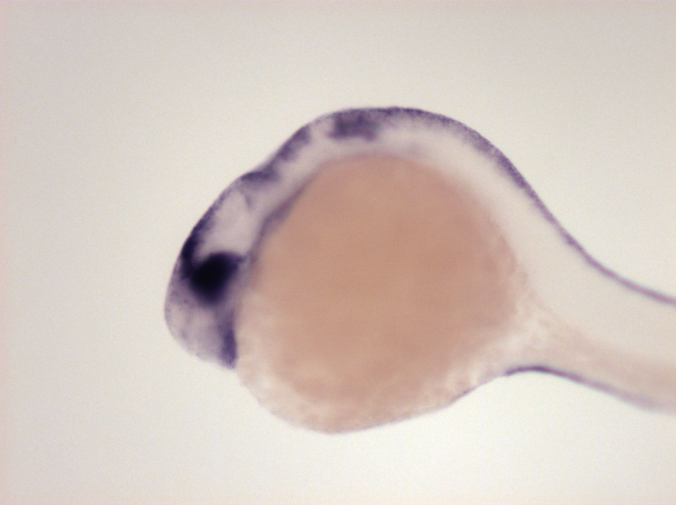 Fig. 4 dorsal CNS, spinal chord, roof plate, dorsal epidermis, median fin fold, tegmentum, dorsal otic vesicle, dorsal part of retina.