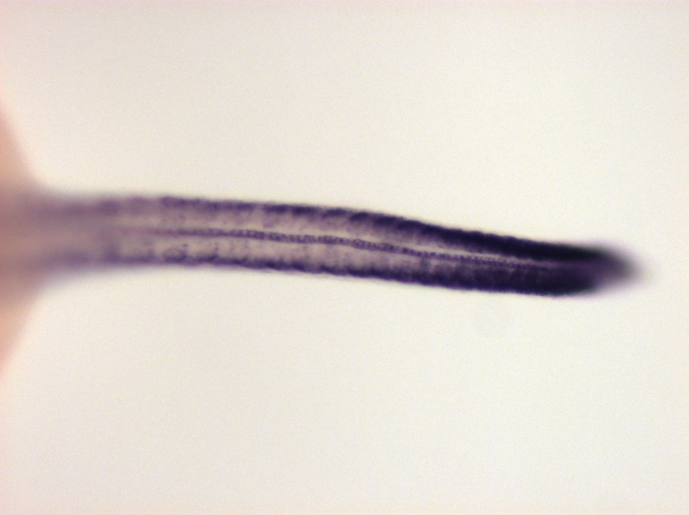 Fig. 4 lens, cornea, somites (slow muscle fibers) more ventrally, muscle pioneers, floor plate, hypochord, chordo neural hinge, weak in dorsal part of posterior branchial arches