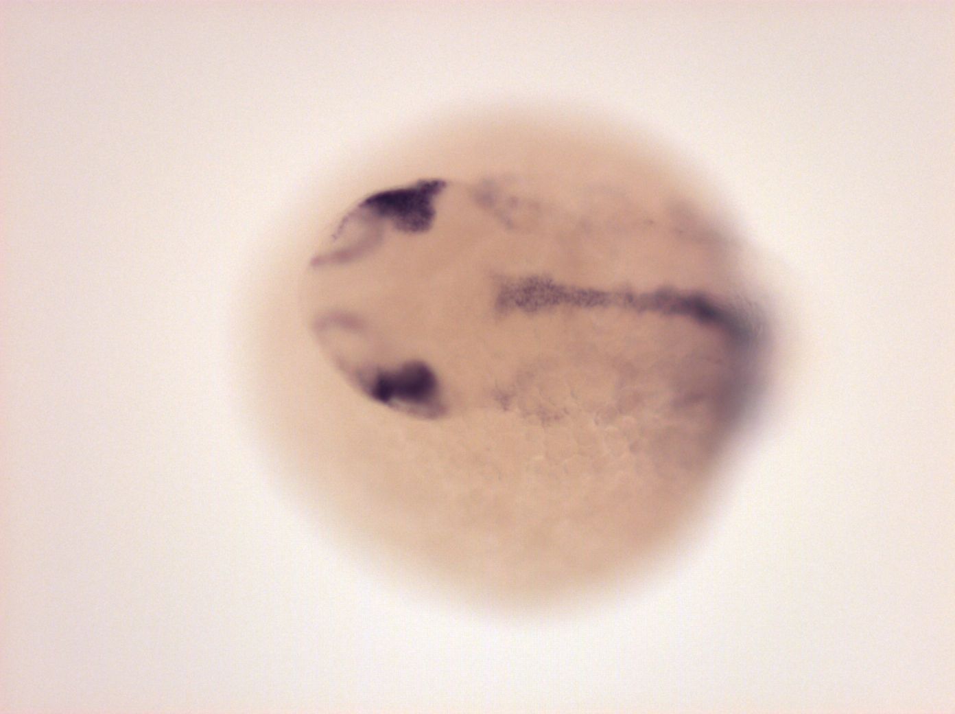 Fig. 4 lens, cornea, somites (slow muscle fibers) more ventrally, muscle pioneers, floor plate, hypochord, chordo neural hinge, weak in dorsal part of posterior branchial arches