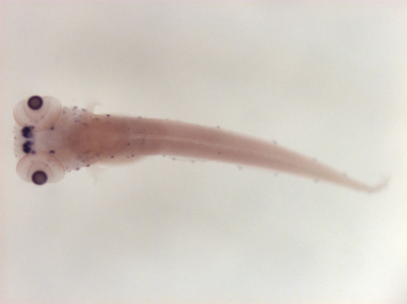 Please note that in 5 day old embryos some structures are not accessible to the probe (such as notochord, most of the trunk and tail). Therefore the description of the expression pattern is only partial.