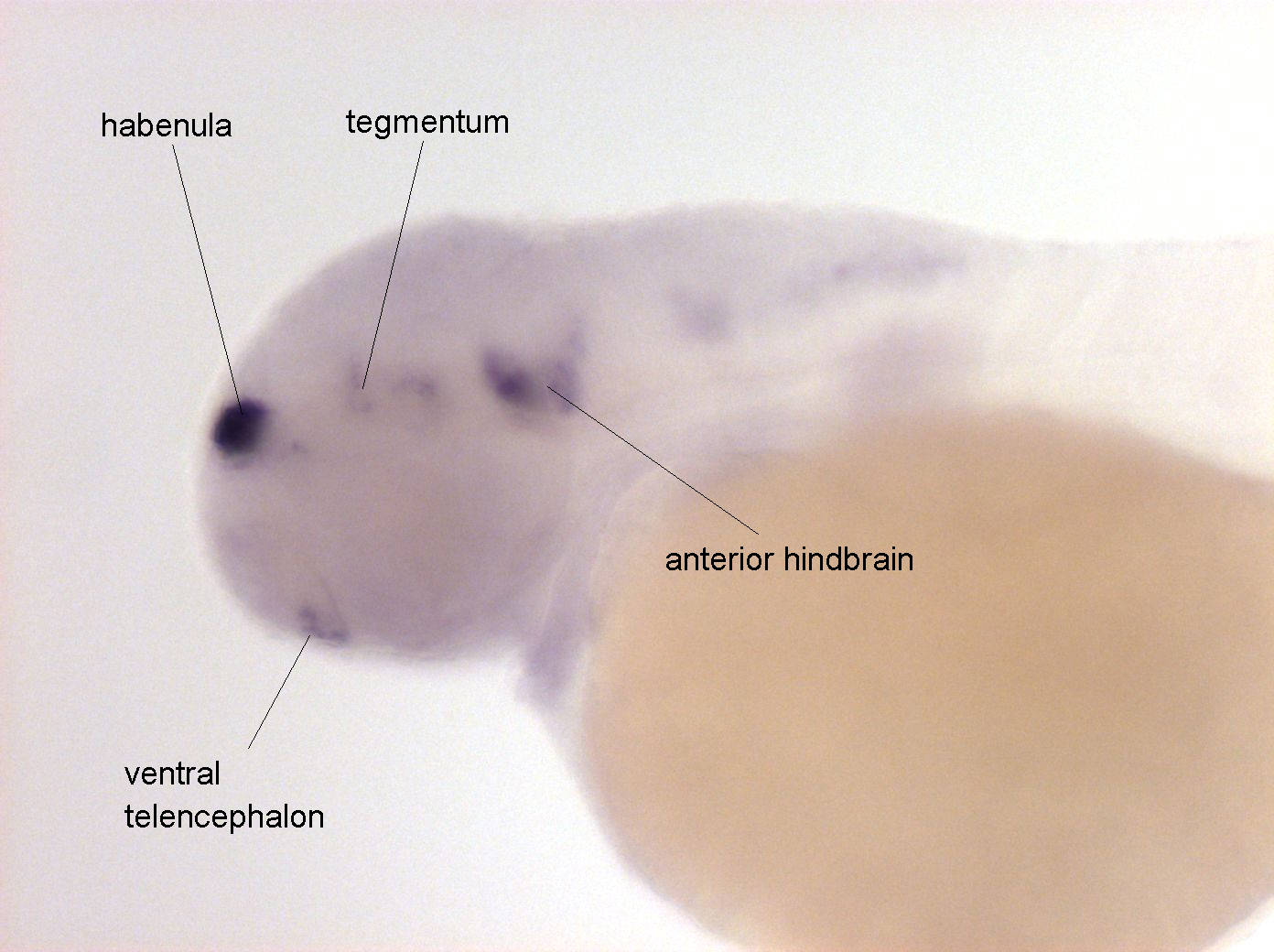 Fig. 5 Expressed in ventral telencephalon, in habenula, tegmentum, anterior hindbrain and in posterior hindbrain and anterior spinal chord