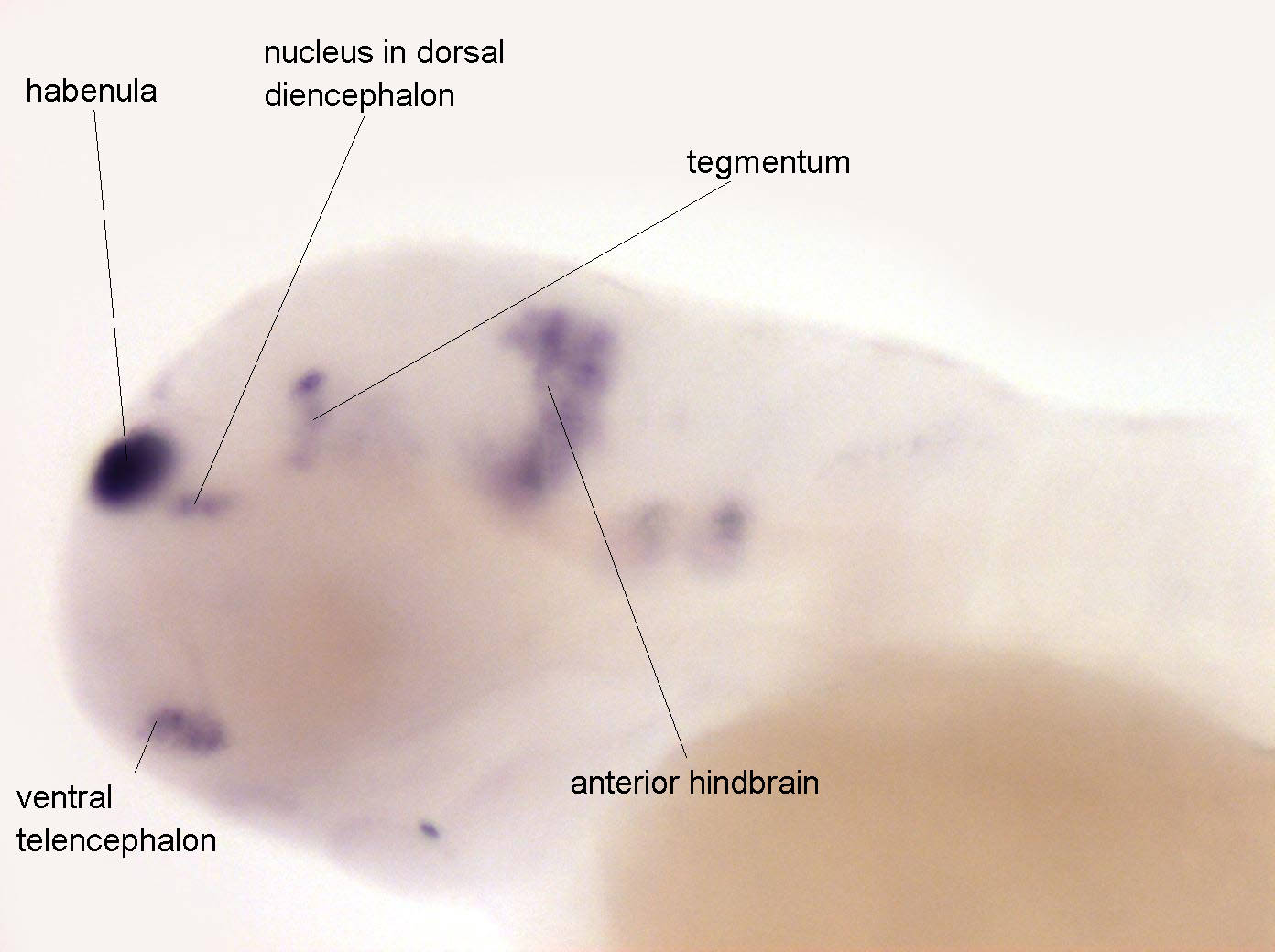 Fig. 6 Expressed in ventral telencephalon, in habenula, tegmentum, anterior hindbrain and in posterior hindbrain and anterior spinal chord