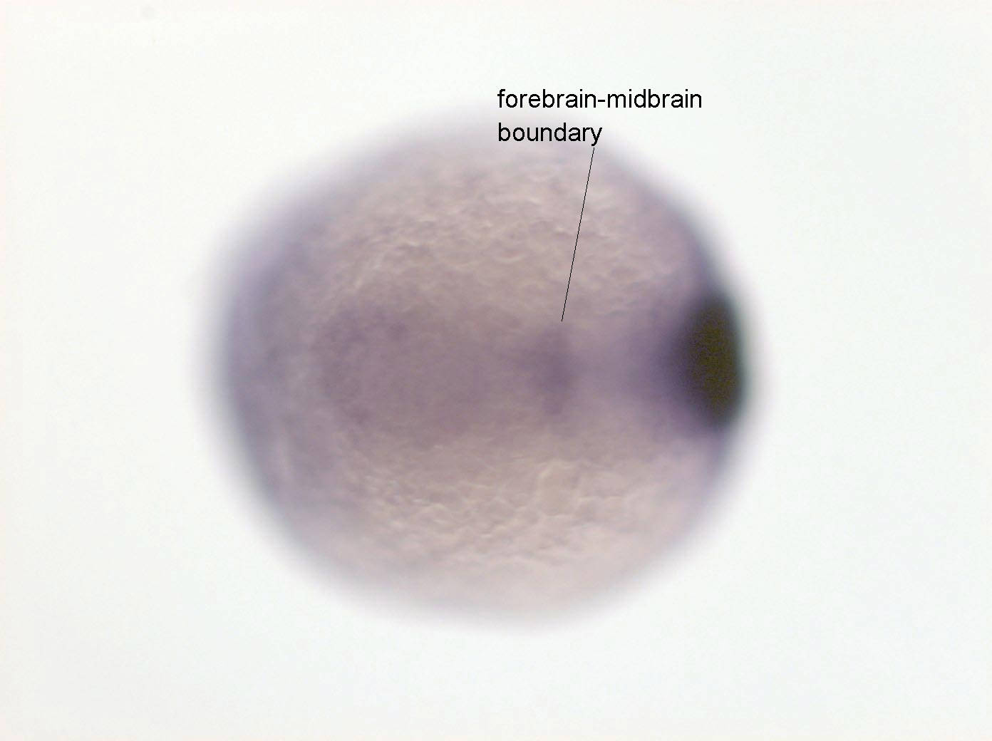 Fig. 2 Expressed in the neural plate at the level of the forebrain-midbrain boundary in presumptive posterior diencephalon, in hindbrain with a stronger expression in rhombomere 5 and in presumptive spinal chord. Also expressed in ventral mesoderm