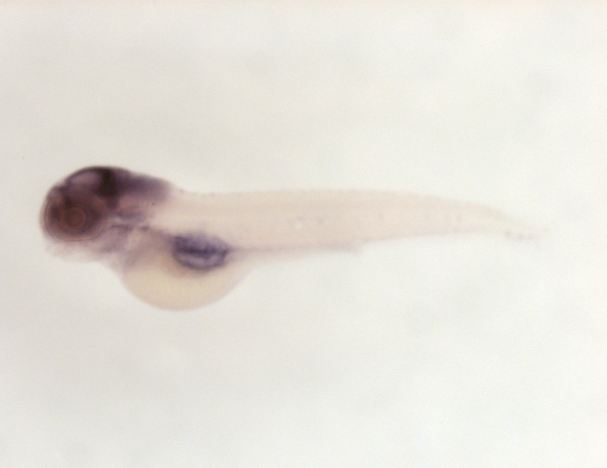 Please note that in 5 day old embryos some structures are not accessible to the probe (such as notochord, most of the trunk and tail). Therefore the description of the expression pattern is only partial.