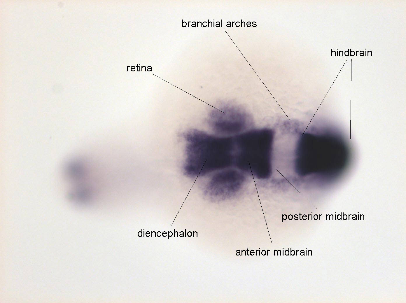 Fig. 3 Expressed in retina, ventral diencephalon, anterior midbrain, hindbrain (less in rhombomere 4), spinal chord, caudal somites, ventral mesoderm, branchial arches