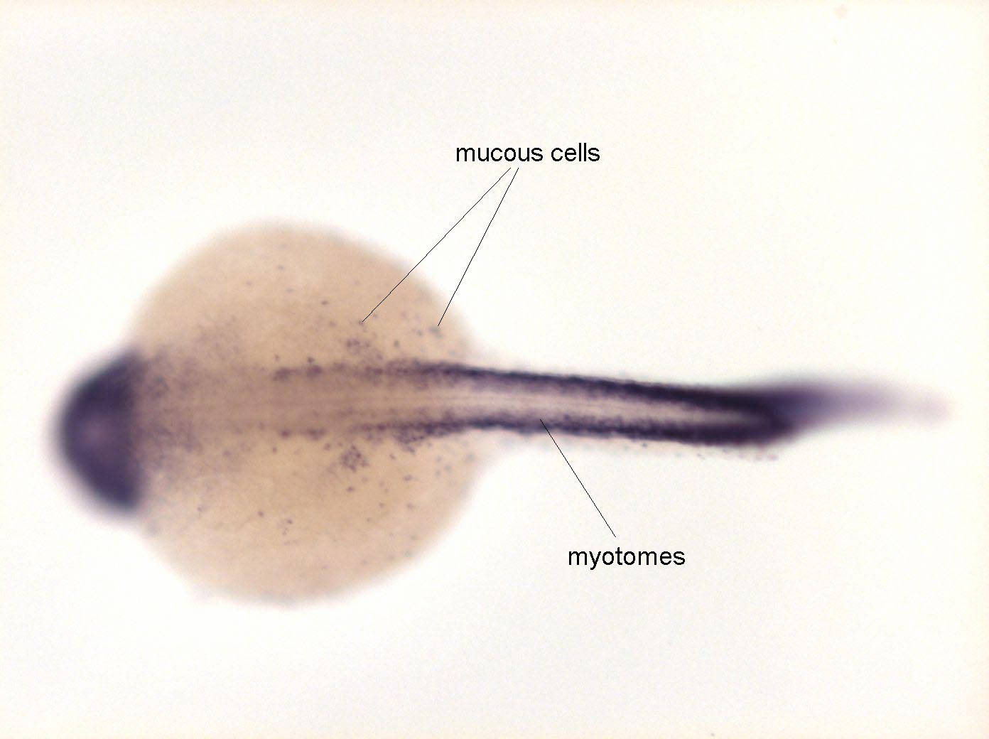 Fig. 4 Expressed in mucous cells, myotomes, retina, epiphysis, tectum, muscle pioneers, slow muscle fibers, pronephric ducts