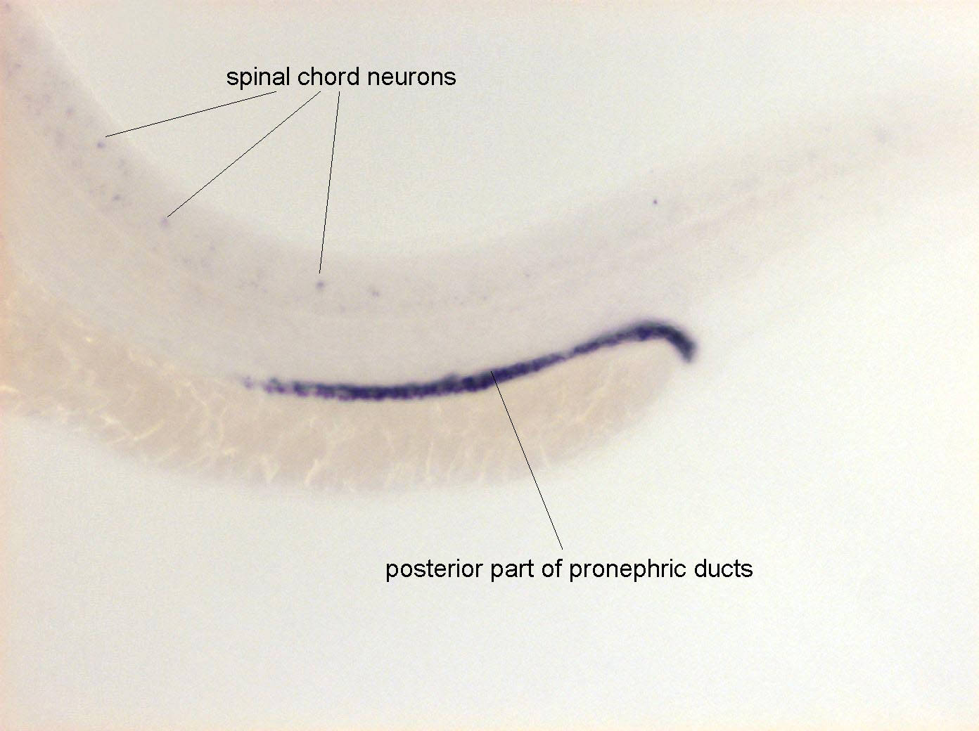 Fig. 4 Expressed in nuclei in diencephalon, tegmentum, hindbrain, in epiphysis, in spinal chord neurons and in the posterior part of the pronephric ducts