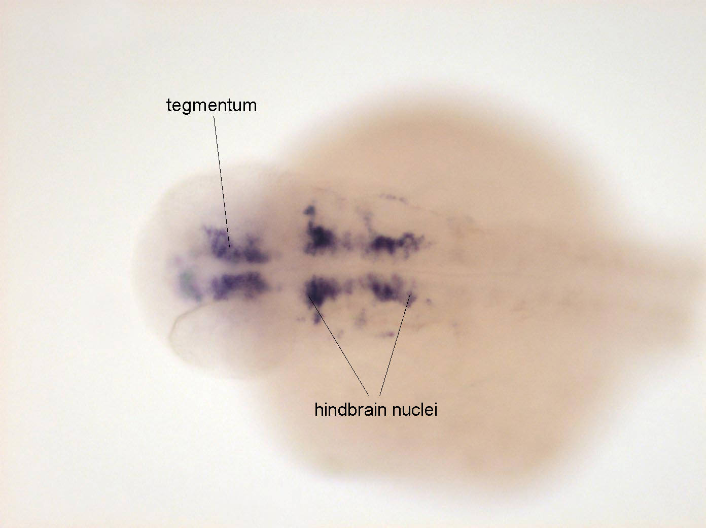 Fig. 5 Expressed in nuclei in diencephalon, tegmentum, hindbrain, in epiphysis and in the posterior part of the pronephric ducts