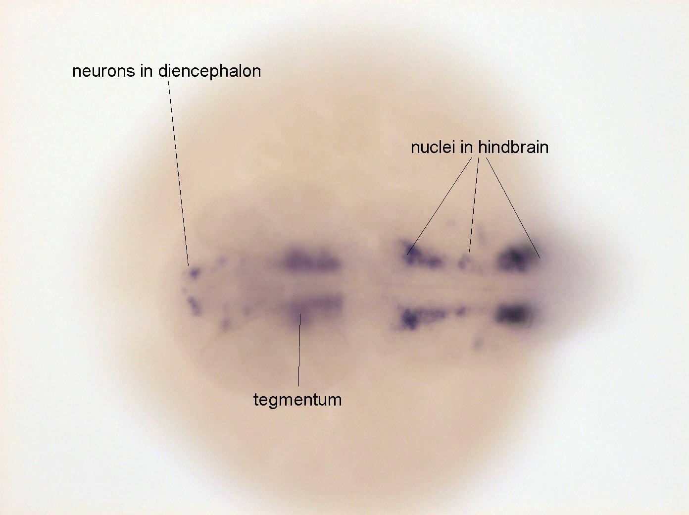 Fig. 5 Expressed in nuclei in diencephalon, tegmentum, hindbrain, in epiphysis and in the posterior part of the pronephric ducts
