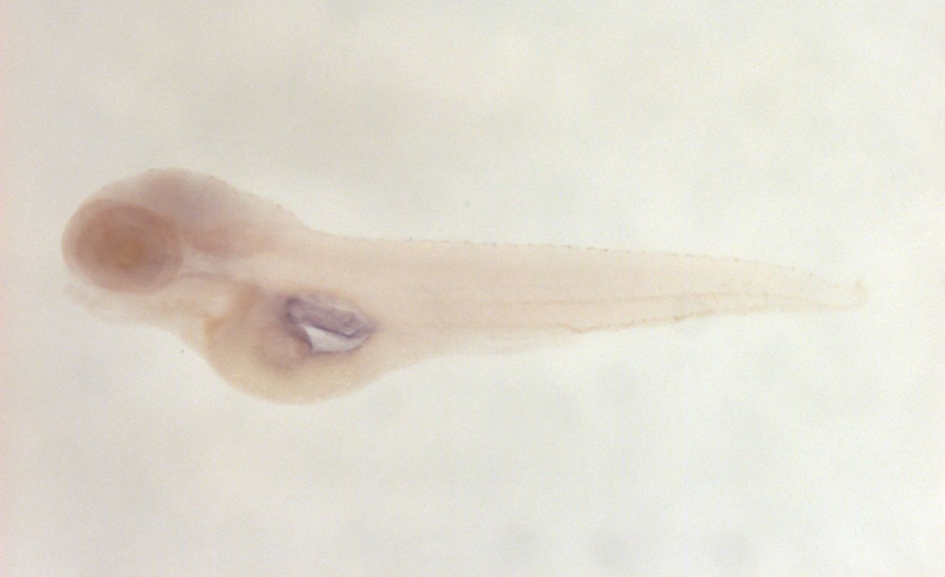 Please note that in 5 day old embryos some structures are not accessible to the probe (such as notochord, most of the trunk and tail). Therefore the description of the expression pattern is only partial.