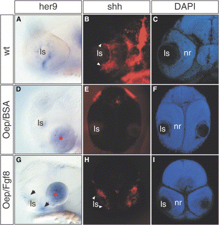 Fig. 4 Fgf8 Rescues her9 and shh Expression in the oep Retina