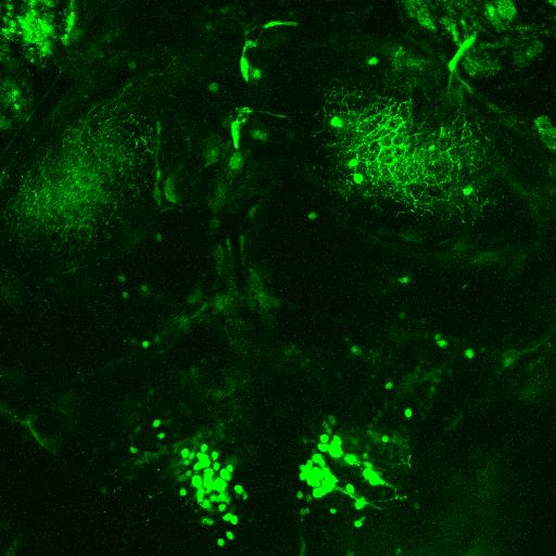 Expression: few cell bodies in anterior thalamus or hypothalamus, light tectal neuorpil, dorsal HB cell bodies, mauthner neuron