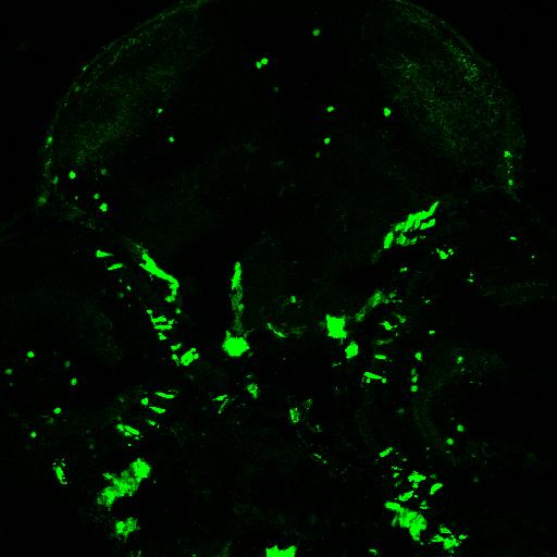 Fig.s1006t Larvae transgenic both for the s1006t insertion and Tg(UAS-E1b:Kaede)s1999t will express Kaede in the sensory cranial ganglia and lateral line ganglia.