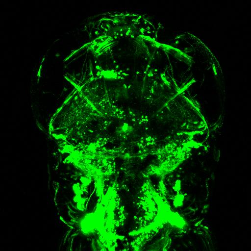 Expression: tectal neuropil, subset of habenula (but maybe to far lateral), dorsal cell bodies in HB, ventral MB cell bodies, ear, axons anterior to ear?, eye: most PRCs, some cell bodies in INL and few RGCs, light IPL
