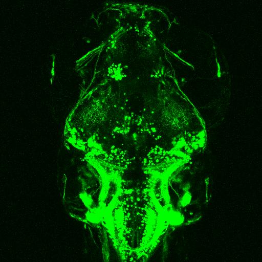 Expression: tectal neuropil, subset of habenula (but maybe to far lateral), dorsal cell bodies in HB, ventral MB cell bodies, ear, axons anterior to ear?, eye: most PRCs, some cell bodies in INL and few RGCs, light IPL