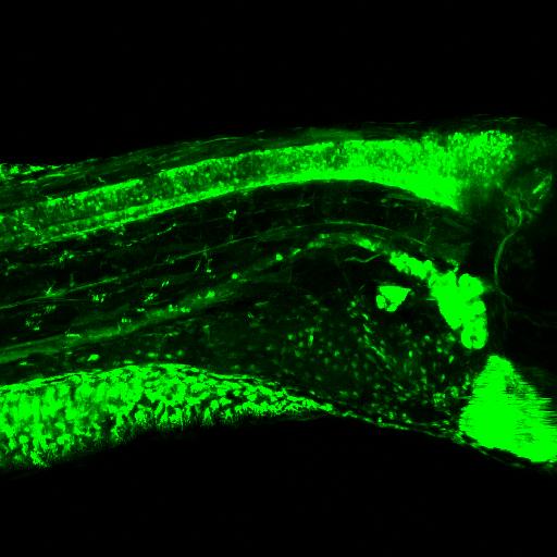 Expression: olfactory pits, broad spinal cord, notochord, gut, light coating of brain, eye: very few PRC