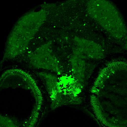 Fig.s1092t Expression: patch on midline of ventral FB (thalamus?), HB, eye?, few distinct cell bodies in ear
