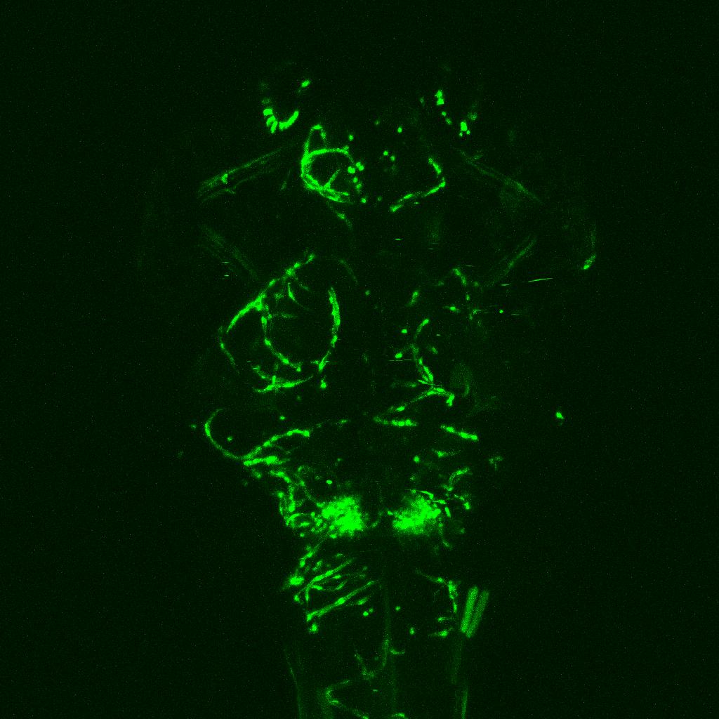 Fig.s1016t Larvae transgenic both for the s1016t insertion and Tg(UAS-E1b:Kaede)s1999t will express Kaede in the hindbrain and blood vessels.