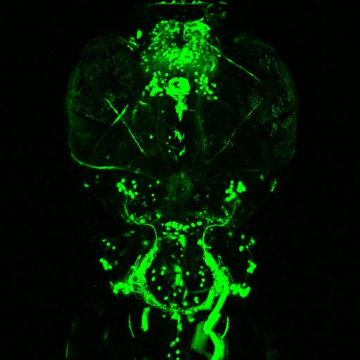 Expression: cell bodies in FB, pineal, subset of habenular neurons w/ projections to a faint IPN, ear, projections from ear to dorsal HB, few scattered dorsal cell bodies in MB and HB