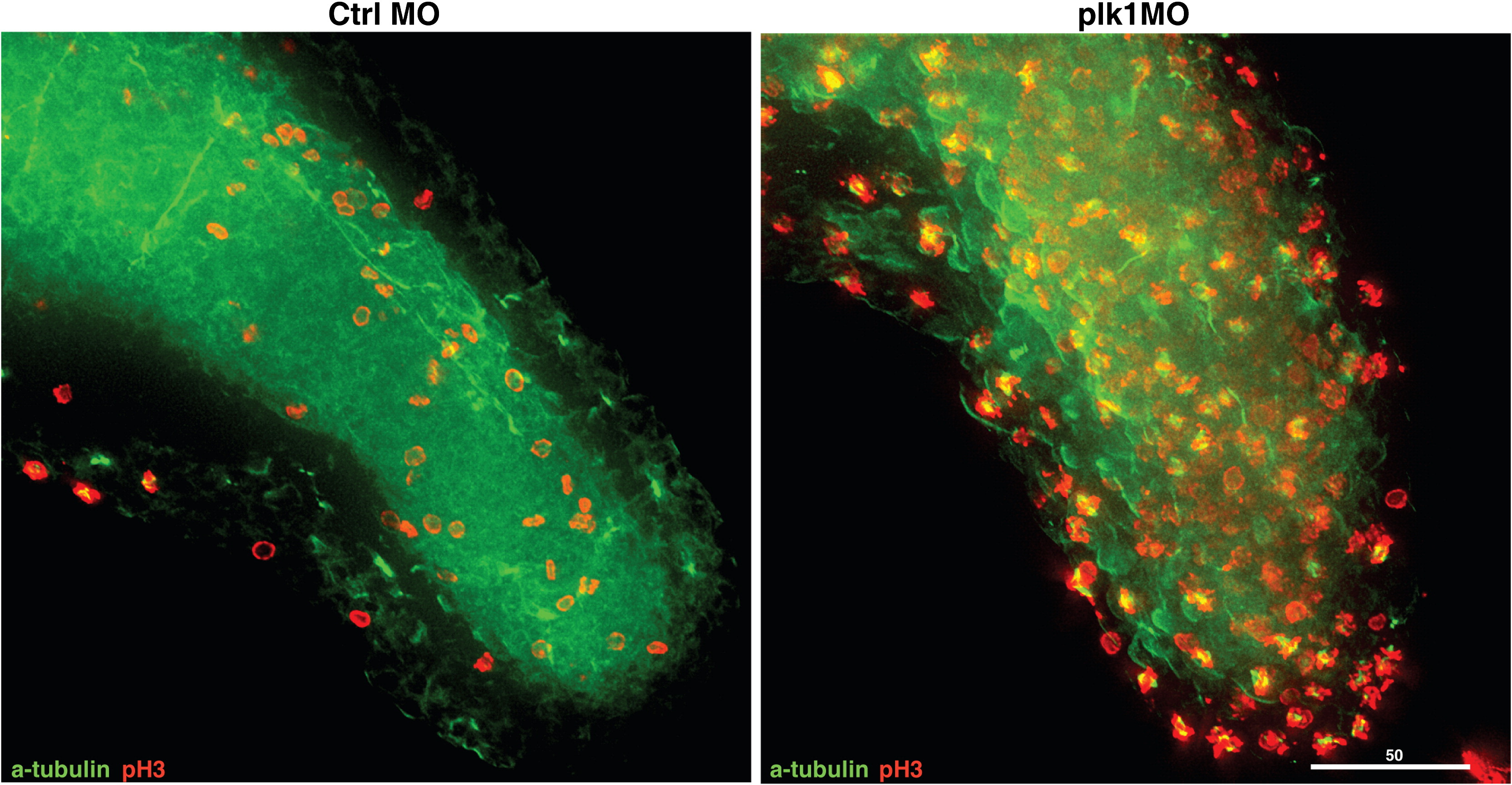 Reprinted from Developmental Biology, 345(1), Jeong, K., Jeong, J.Y., Lee, H.O., Choi, E., and Lee, H., Inhibition of Plk1 induces mitotic infidelity and embryonic growth defects in developing zebrafish embryos, 34-48, Copyright (2010) with permission from Elsevier. Full text @ Dev. Biol.
