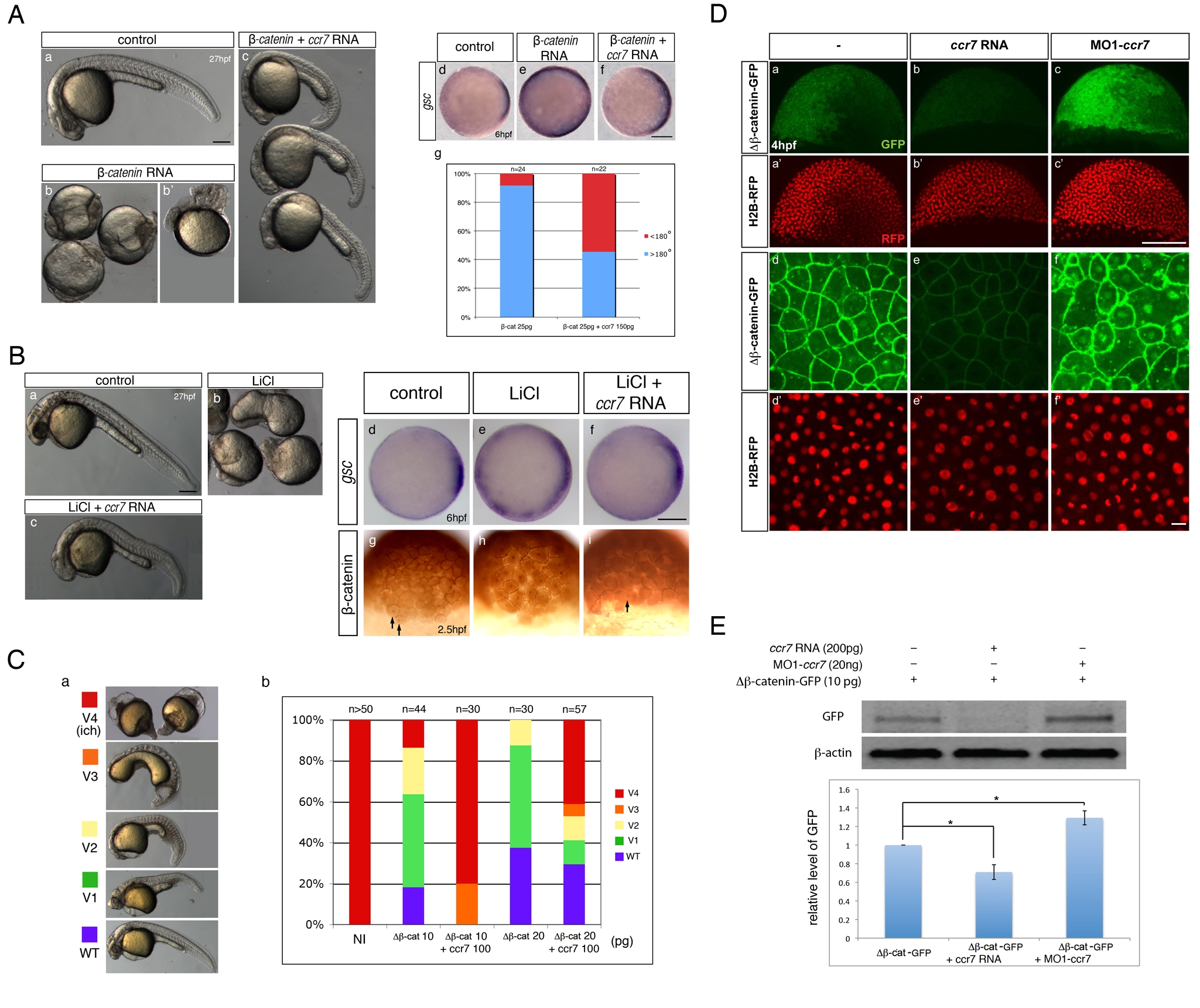 Ccr7 inhibits β-catenin activity via a Gsk3β-indepenedent mechanism.
