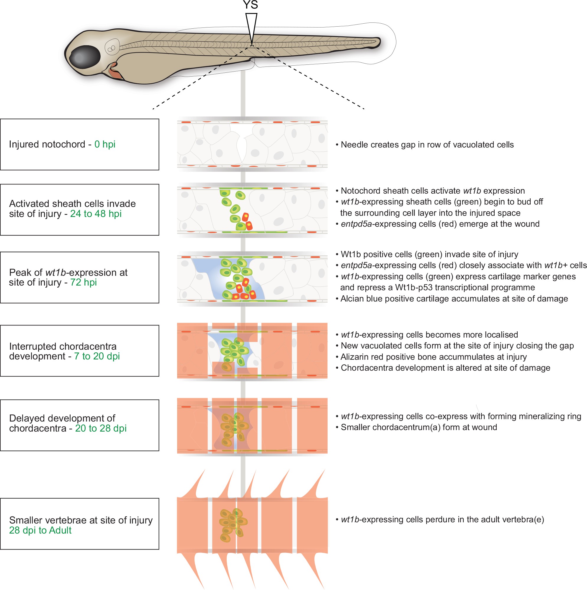 Schematic of the notochord wound response.
