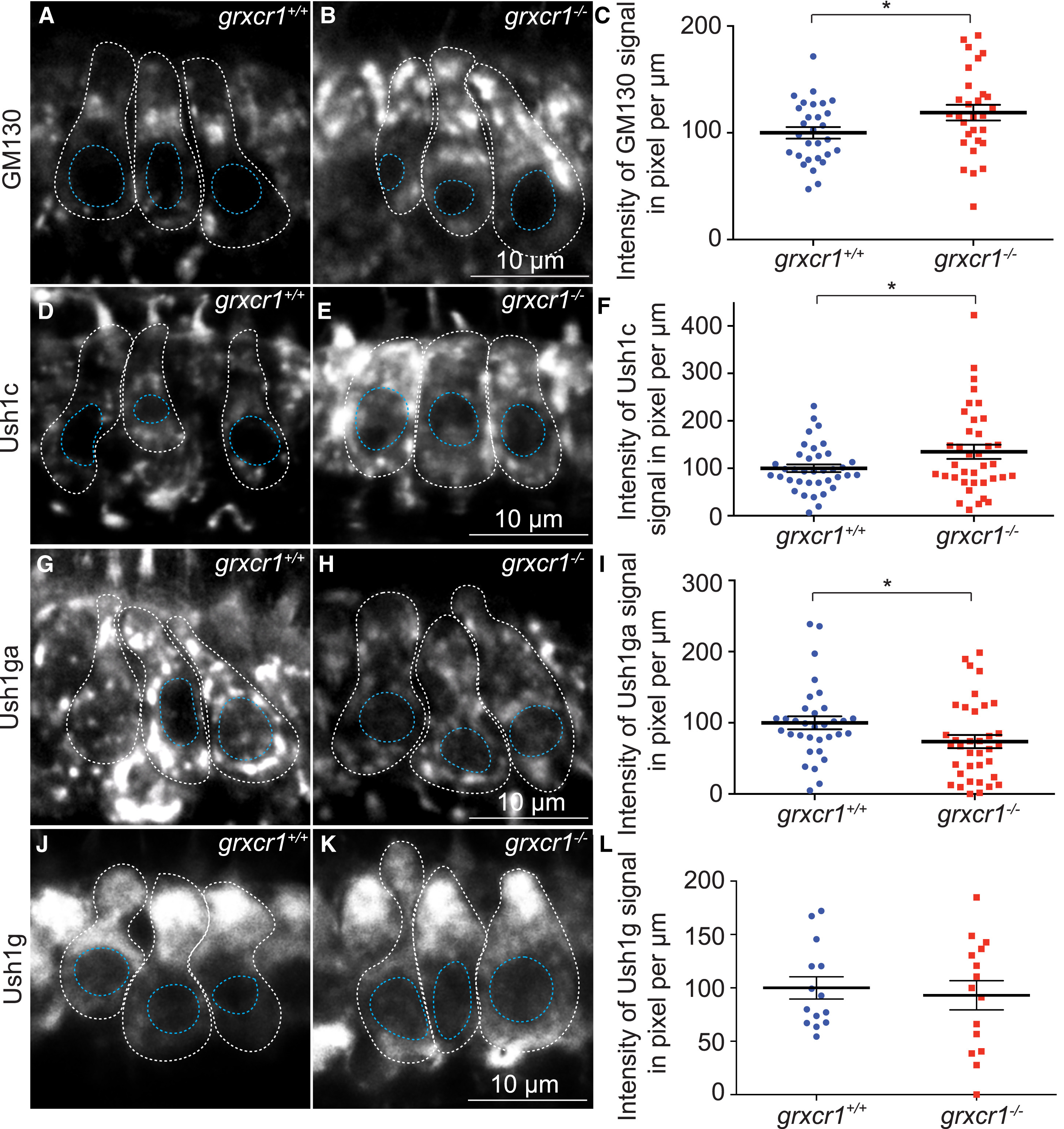 The Integrity of the cis-Golgi and Abundance of Ush1c and Ush1ga Are Affected in grxcr1−/− Mutants