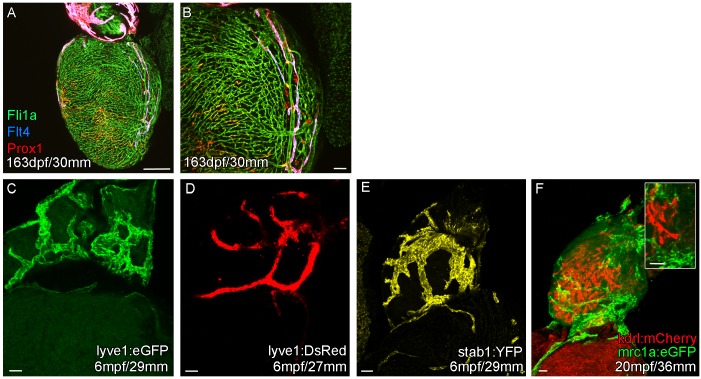 Whole-mount confocal imaging of transgenic zebrafish hearts expressing the pan-endothelial