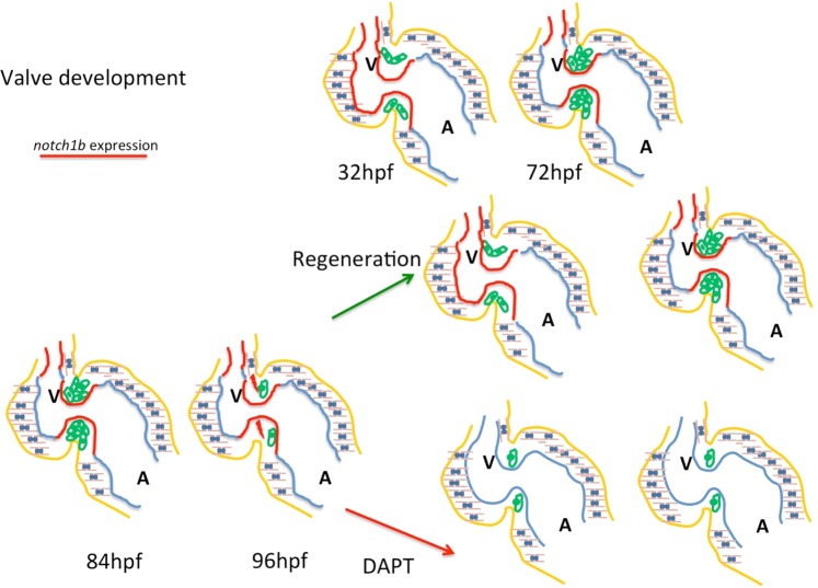 Sensing of immature intracardiac flow patterns activates a Notch mediated regenerative program, recapitulating cardiac valve development. At embryonic developmental stages a feedback loop where intracardiac flow dynamics regulate