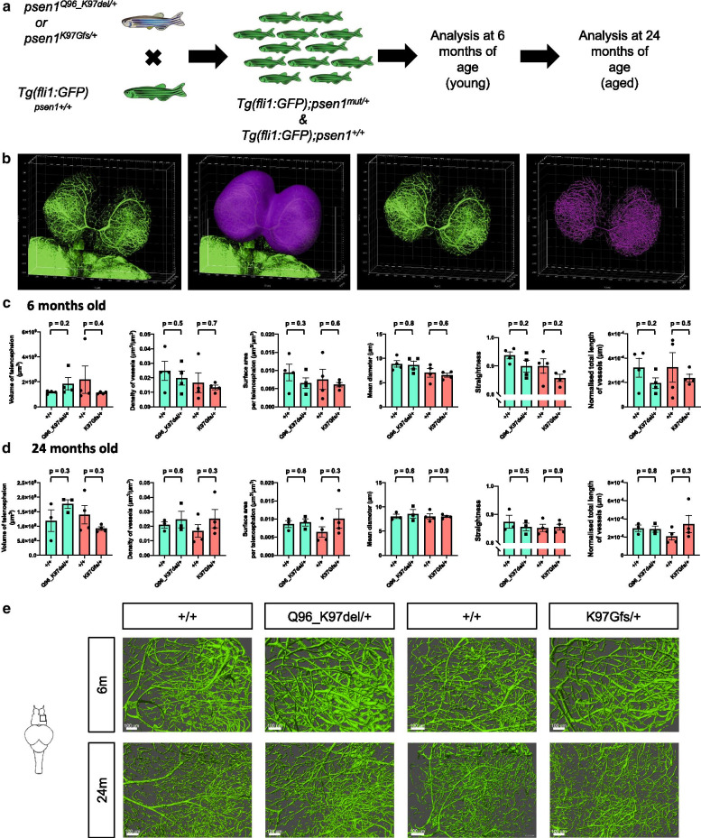 No statistically significant changes to brain vascular network parameters due to heterozygosity for the Q96_K97del or K97Gfs mutations of