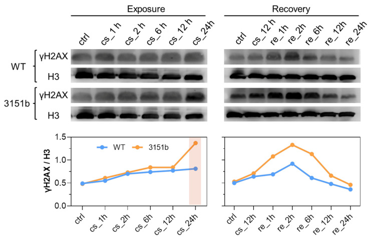 Tmem39b protects the organism from cold-warm stress-induced DNA damage. The upper panel contains Western blots for the WT and