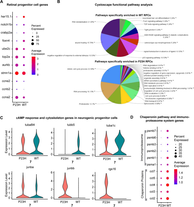 Retinal progenitor cells (RPCs) are enriched in the RP model whereas a neurogenic progenitor cell (NPCs) cluster was identified in both WT and P23H