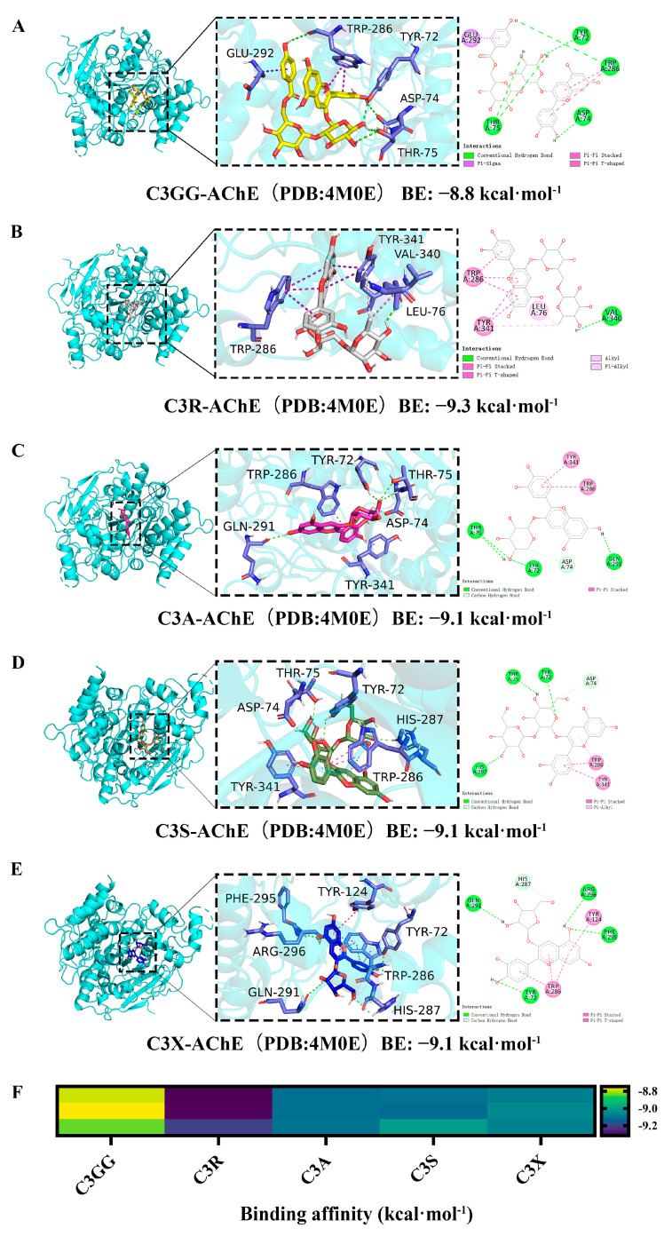 Molecular docking results of AChE and cyanidin derivatives. (