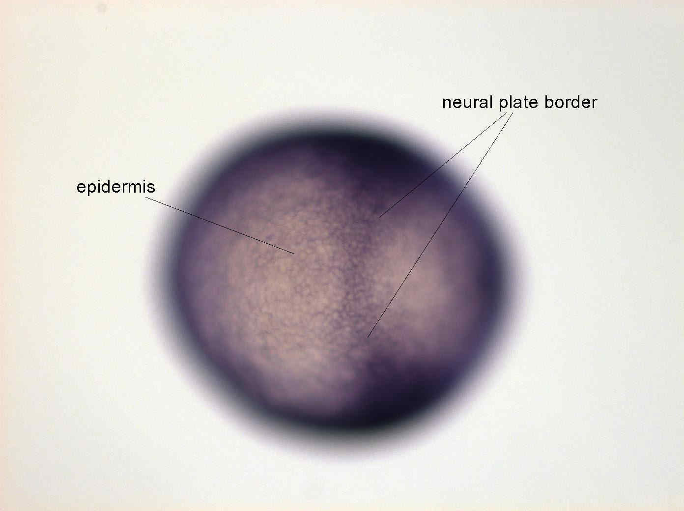 Fig. 1 Expression is observed in presumptive epidermis and at the border of the neural plate, in forerunner cells and axial mesoderm