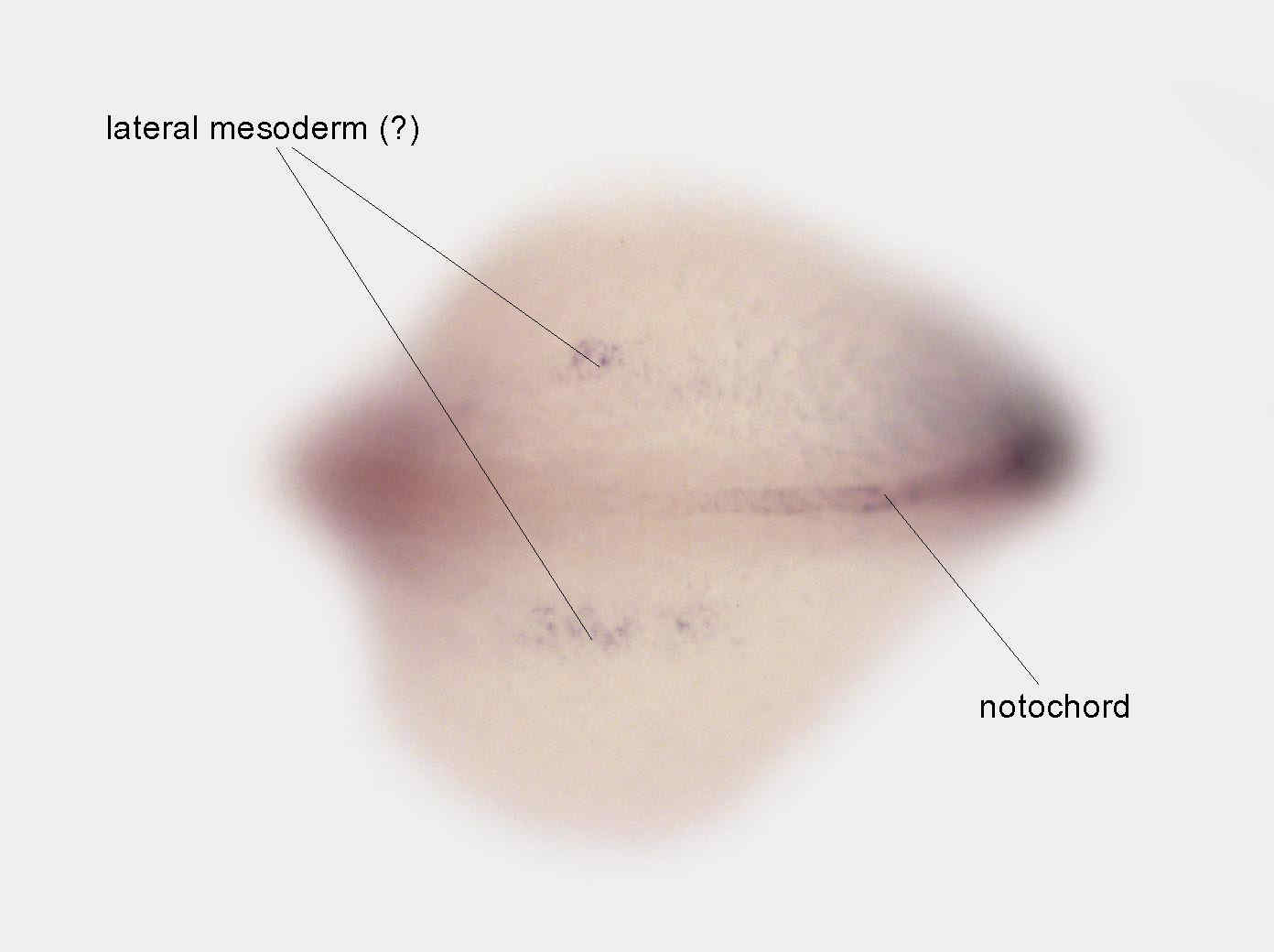 Fig. 2 in addition to the strong notochordal staining a new site of expression is observed in the presumptive caudal fin fold