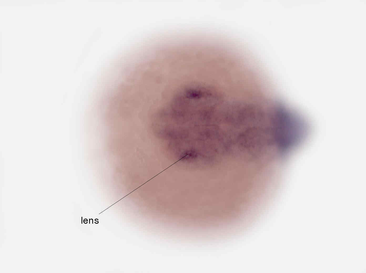 Fig. 4 Expression is observed in lens, somites and tail bud