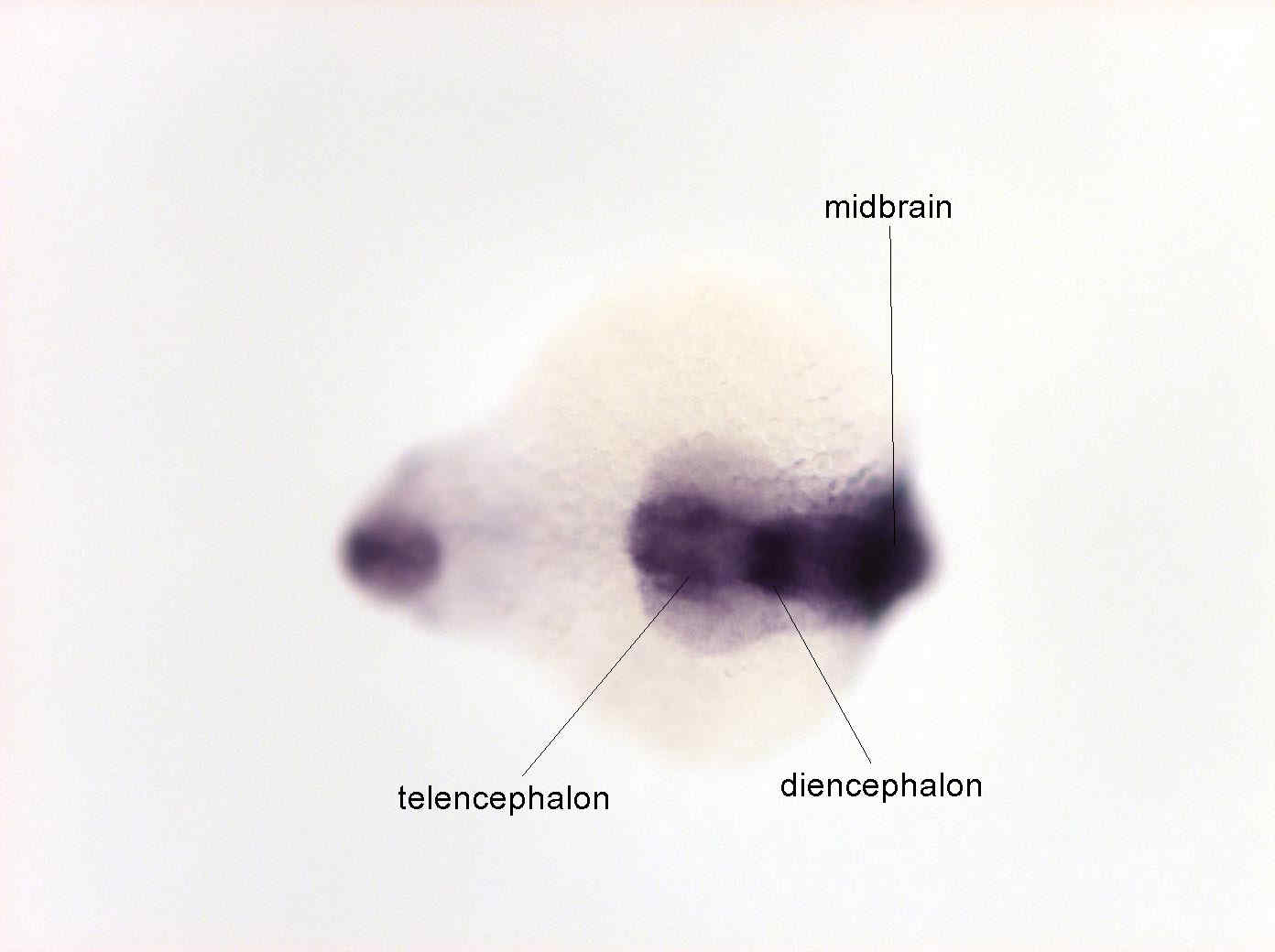 Fig. 3 In the hindbrain, labelling is specifically observed in rhombomere 2, 5 and 6