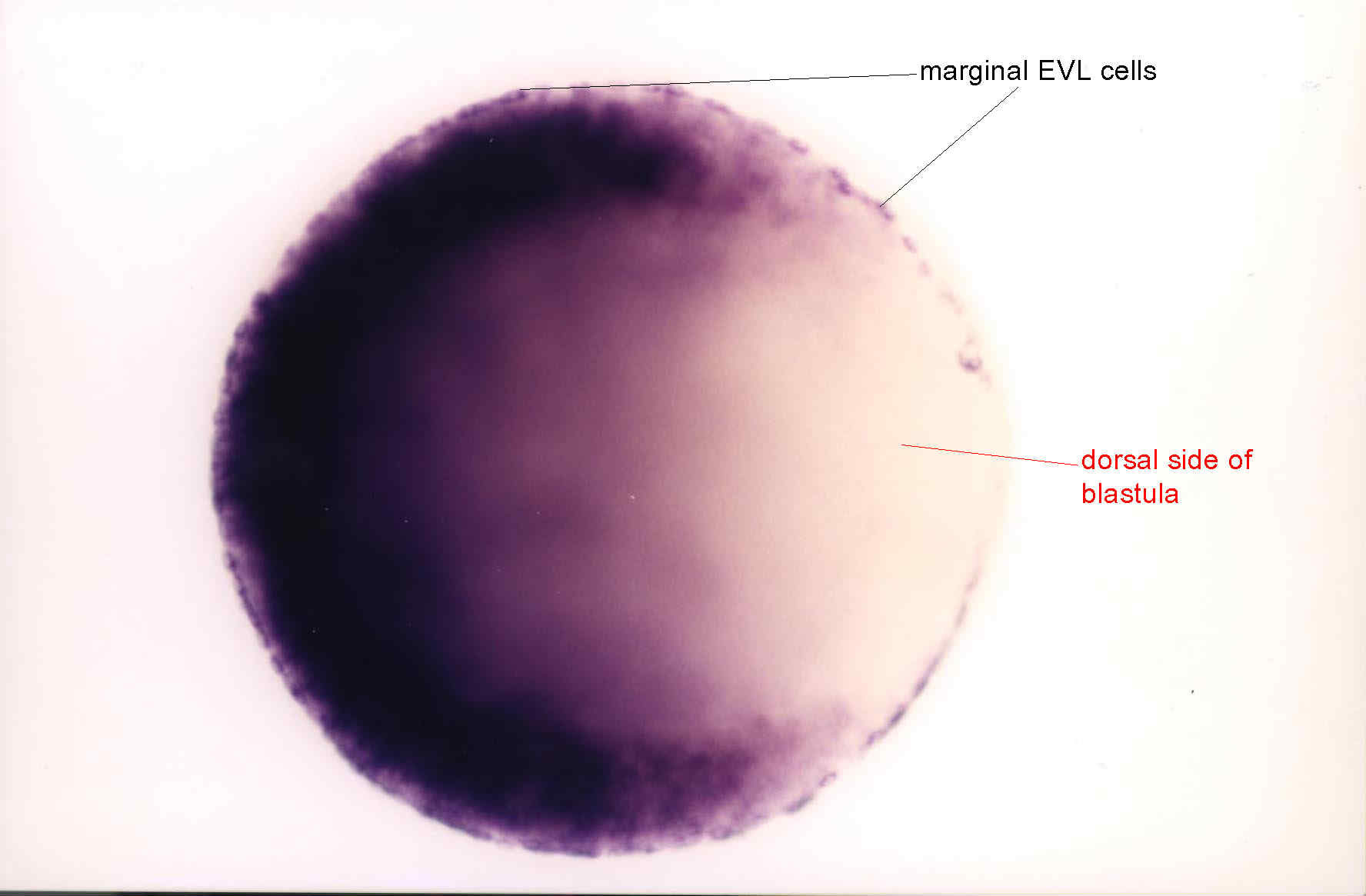 Fig. 1 Expression is initially in the whole blastula which becomes progressively restricted to the ventral side of the embryo. Expression disappears from the dorsal margin then from the dorsal side of the embryo.