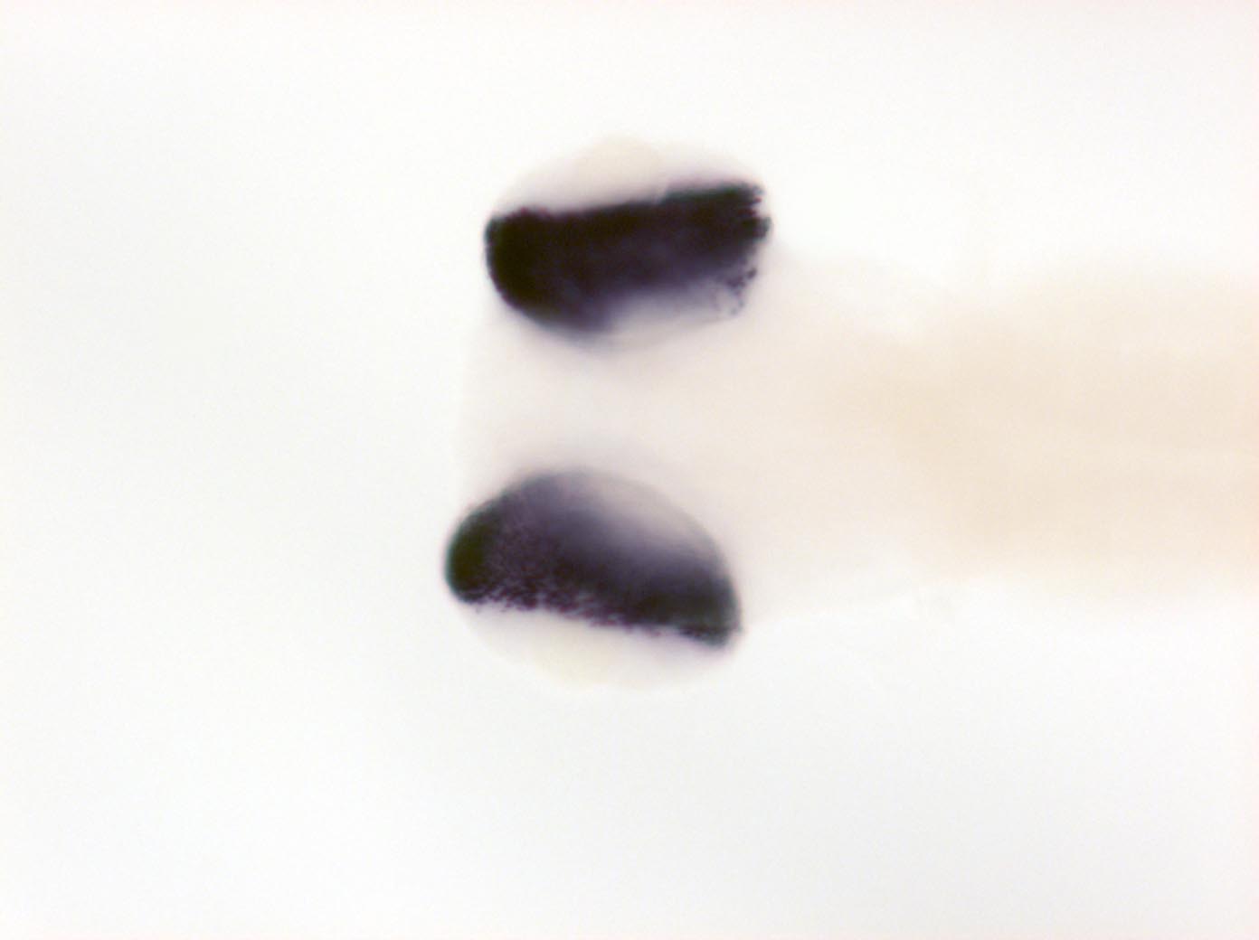 Please note that in 5 day old embryos some structures are not accessible to the probe (such as notochord, most of the trunk and tail). Therefore the description of the expression pattern is only partial.