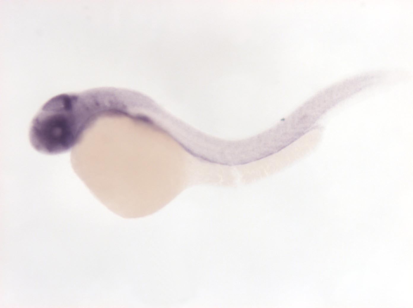 more labelling in retina, tectum, branchial arches, pectoral fin bud
