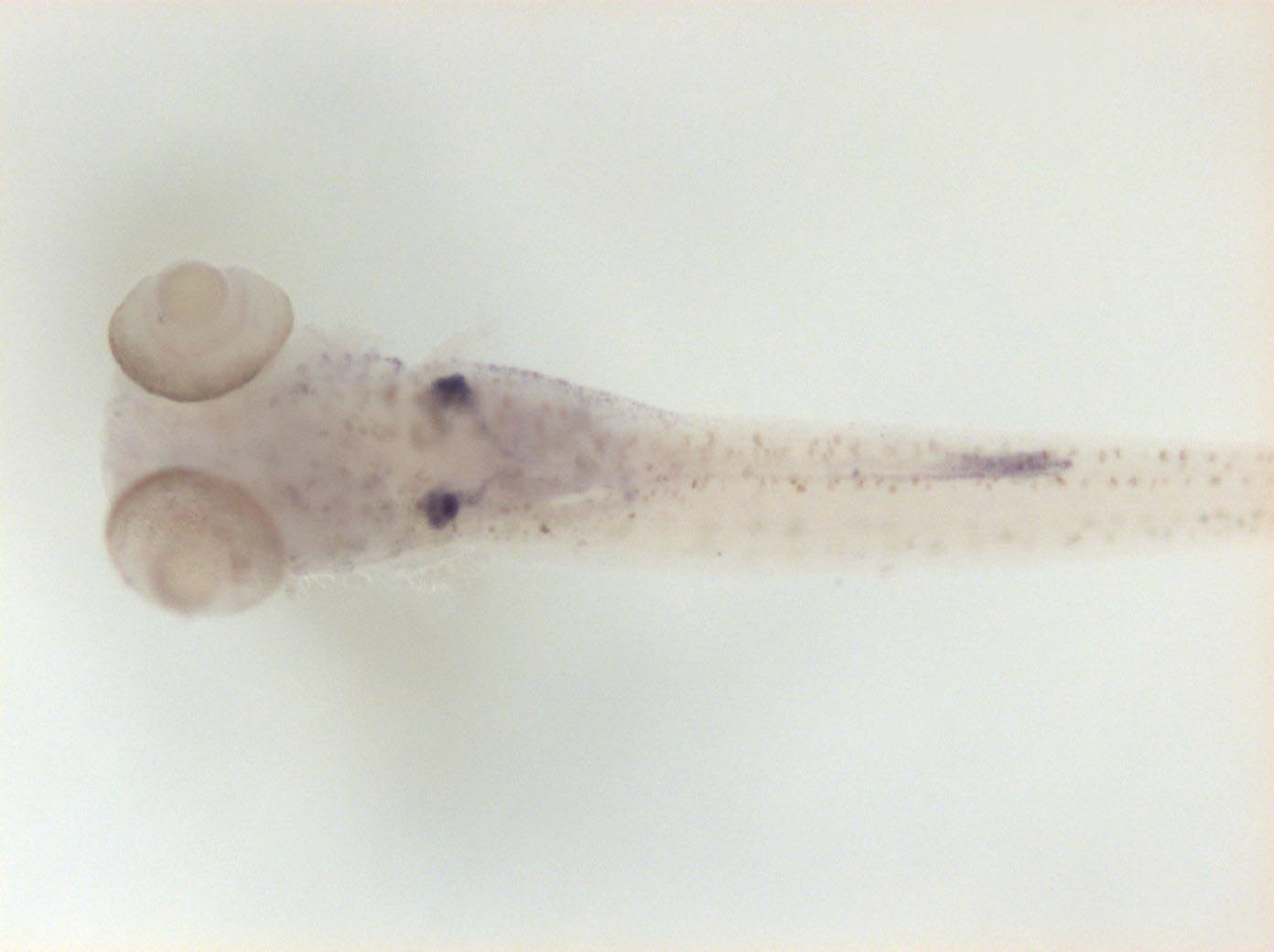 Please note that in 5 day old embryos some structures are not accessible to the probe (such as notochord, most of the trunk and tail). Therefore the description of the expression pattern is only partial.