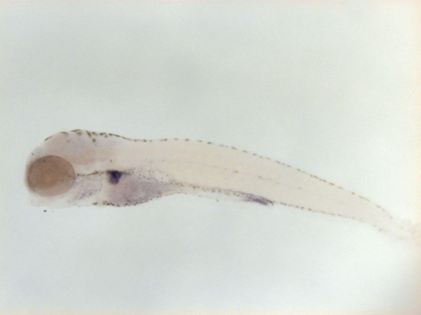 Please note that in 5 day old embryos some structures are not accessible to the probe (such as notochord, most of the trunk and tail). Therefore the description of the expression pattern is only partial.